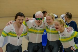 On the opening day of action at the 2025 UCI Para- cycling Track World Championships in Rio, Tandem B Team Sprint quartet Jessica Gallagher and pilot Jacqui Mengler-Mohr together with Kane Perris and pilot Luke Zaccaria joined the world record club in their qualifying, laying down a heater 49.641 performance.